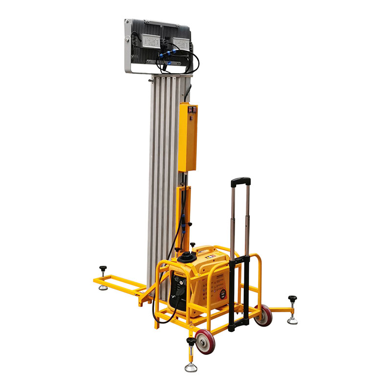 3. 升降平臺(tái)采用電動(dòng)推桿升降方式,一鍵控制升降及任意高度懸停,滿足現(xiàn)場(chǎng)指揮操作的方便性;最高升起高度可達(dá)5.2米,燈頭可上下0~135°范圍內(nèi)翻轉(zhuǎn)調(diào)節(jié)照射角度。