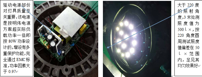 最大輸出功率為50W的廣角型LED防爆平臺燈,所配置的電源為輸出最大功率可達(dá)80W的電源,為燈具保持長期持久使用護(hù)航: