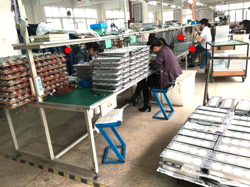 生產(chǎn)線上鋪滿了產(chǎn)品,以至于鏡頭都覆蓋不到全部。