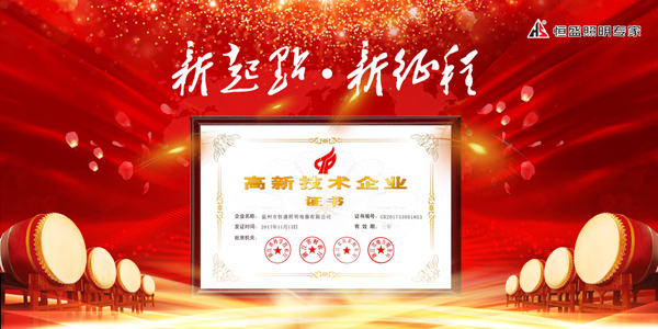 2017年11月13日,溫州市恒盛照明電器有限公司收到由浙江省科學(xué)技術(shù)廳,浙江省財(cái)政廳,浙江省國(guó)家稅務(wù)局,浙江省地方稅務(wù)局四部門聯(lián)合頒發(fā)的 《高新技術(shù)企業(yè)證書》。這對(duì)于恒盛照明來(lái)說(shuō),是繼LED固定照明產(chǎn)品通過(guò)中國(guó)質(zhì)量認(rèn)證中心的產(chǎn)品強(qiáng)制認(rèn)證即3C認(rèn)證后的又一大喜事,為恒盛照明2018年的良好發(fā)展開(kāi)了一個(gè)好彩頭。
