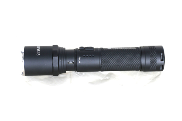 ◆ 前置開關(guān),強光、工作光與爆閃開關(guān)區(qū)域分開。微電腦控制3段式調(diào)光(強光-工作光-爆閃)大開關(guān)輕觸轉(zhuǎn)換強光、工作光或點射。小開關(guān)實現(xiàn)爆閃,爆閃光在30米以內(nèi)能使人瞬間致盲,達到警戒和個人防衛(wèi)作用。