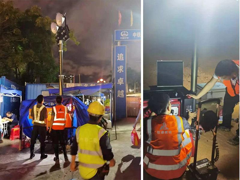 移動照明燈組又叫全方位自動升降泛光工作燈、多功能升降照明燈塔或者自發(fā)電式移動照明燈組等,采用模塊化設(shè)計,由高速移動底盤、靜音機(jī)組、高強(qiáng)度升降桿和照明燈組成,高效能LED兩支或四支燈頭交錯照射,360度全景照明,可高達(dá)幾萬流明的強(qiáng)光,推車式發(fā)電機(jī)組、超長使用時間;專用防護(hù)箱可防止水分、粉塵、溫度及撞擊等給儀器設(shè)備帶來的破壞,功能強(qiáng)大的應(yīng)急、救援、照明產(chǎn)品。下面恒盛照明帶大家詳細(xì)了解升降式移動照明燈組。
