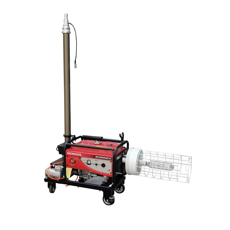 3.燈盤、氣缸和發(fā)電機(jī)組為整體結(jié)構(gòu),發(fā)電機(jī)組底盤裝有帶剎車裝置的萬向輪,可在坑洼不平的路面正常使用。